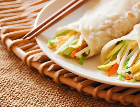 Цього дня в різних провінціях Китаю було заведено їсти весняні коржі 春饼 Чуньбін (трохи товщі за наші млинці), весняні рулетики з тонкого тіста 春卷 Чуньцзюань. Млинці готують із пшеничного борошна, і являють собою смажені або приготовані на пару коржі. Як начинку в них використовують бобові паростки, молоду черемшу, картопляну вермішель. Поїдання таких млинців називається "яочунь", що в перекладі означає "скуштувати весну". Ці ласощі символізують трепетне передчуття Весни та Нового Життя.